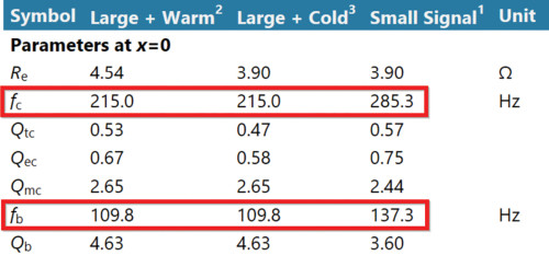 It is recommended to compare the parameters, especially the system resonance frequency fb of vented and passive radiator systems, in the small and the large signal domain, as they can change significantly: For example, the port characteristics may change at high levels if the port mouth is located too close to a wall. Passive radiators feature a suspension system similar to that of the main transducer, which can vary by a factor of two and more under large-signal conditions, affecting the system resonance frequency fb as shown in Figure 7. This affects the system alignment and increases the passive radiator displacement.