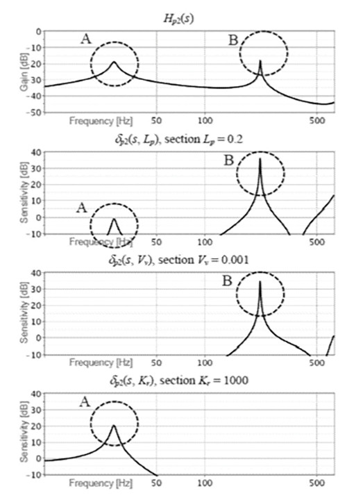 At the end of the day, there are two primary resonances explored and controlled — that of the “A” the transducer mechanical resonance and “B” the Helmholtz resonance from the duct and passive radiator. “A” also represents the lower limit of the usable frequency range. Varying the parameters of the system the sensitivity of “A” or “B” can be controlled independently to a certain degree (see Figure 6). Ultimately, some optimized embodiments can control the gain balance between the two and the passive radiator can provide a filter for the incoming noise to a much greater degree than the pure duct to the exterior that is used in the Fresh Air Subwoofers currently implemented by Blueprint Acoustics/Alpine.