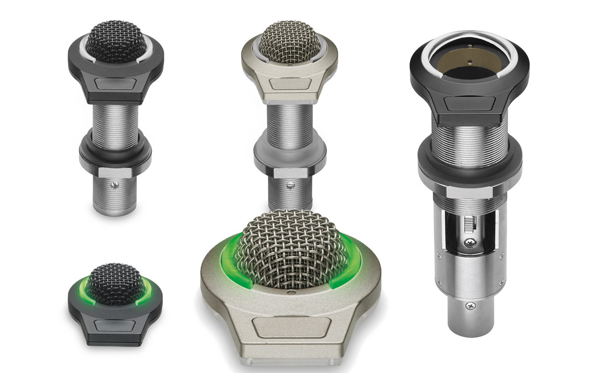 Each mic is protected by a rugged, all-metal case with a dual-layer steel mesh grille, and features a low-profile design that enables it to be mounted unobtrusively in a tabletop. Users can locally mute and un-mute each microphone thanks to a capacitive-type touch-sensitive switch; the red/green LED indicator that encircles the grille alerts user to audio status – it glows green when live and turns red when muted. These phantom-powered mics are equipped with a 3-pin XLRM output and boast UniGuard RFI-shielding technology for outstanding rejection of radio frequency interference. Both models are available in black and silver.