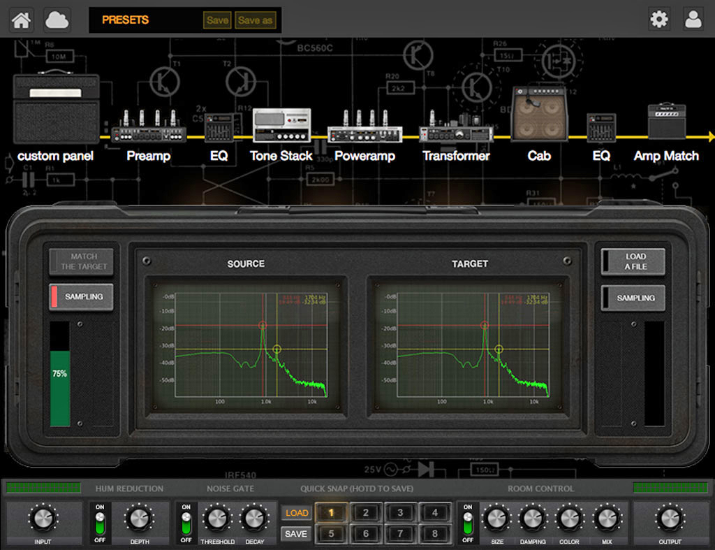 Amp Matching allows musicians to instantly replicate any real amp tone in the world, right in their Mac or PC. BIAS Desktop analyses the input signal from a miked amp or pre-recorded guitar track, and invisibly inserts additional processing into the signal path to make the current amp precisely match the tone of the inputted guitar signal – a world first for a DAW plug-in. Once the tone is captured and replicated, the user can save it as a custom preset and share it with other musicians on ToneCloud.