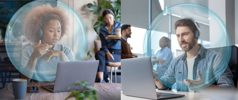 The result is that VoiceDefender Gen2 technology creates a virtual "quiet sphere" around the user, attenuating distracting sounds from all directions and sounding great, even in noisy environments. And the special microphone configuration combined with Alango proprietary software enables meeting Teams Open Office certification standards.
