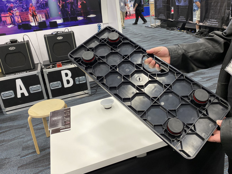 The board can accommodate a speaker or amp up to 100lbs (45kg) in weight, minimizing the vibrational variables of the stage environment and ensuring the performer’s sound remains consistent night after night, as well as adding extra clarity and bass punch.
