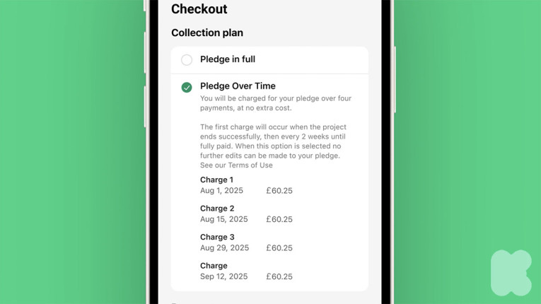 With Pledge Over Time, Kickstarter is now allowing backers to split their pledge into four equal payments. This gives backers the flexibility to budget their support over time, making it easier to access higher-tier rewards, additional add-ons, and support big, ambitious ideas. Payments are automatically made every two weeks, ensuring a seamless and hassle-free process.